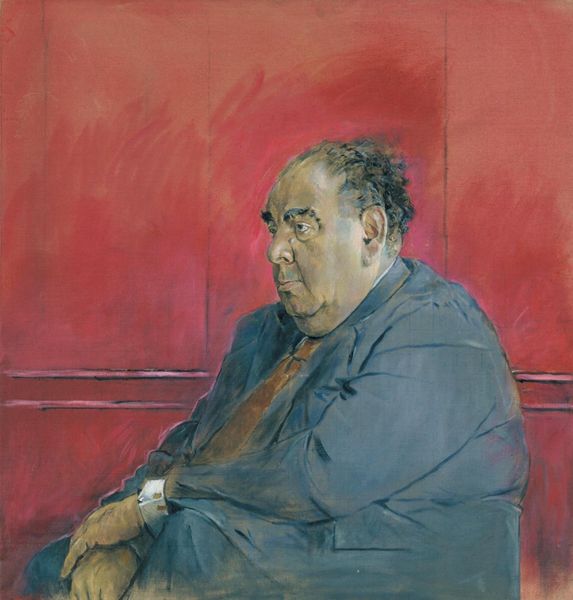 Editor: So here we have Konstantin Korovin's oil on canvas, "Portrait of Nikolay Chichagov" from 1902. It's a really interesting portrait; I'm struck by how informally it's painted, especially given the subject seems to be someone of importance. How do you interpret the symbolism within this painting? Curator: I am immediately drawn to the symbolic weight of the rose adorning Chichagov's lapel. Roses often signify love, beauty, and secrecy, but within the Russian context of 1902, and rendered in such a vivid red, might it also hint at revolutionary undercurrents? Consider also the contrast: a vibrant splash against the muted tones of his attire and the backdrop. Editor: That’s a fascinating point about the potential for revolutionary symbolism! I hadn't considered that. Is the muted color palette typical of the time? Curator: The muted palette invites deeper contemplation. The limited range perhaps mirrors a sense of societal restraint, of unspoken anxieties present during that era of Russian history. The almost fleeting, impressionistic brushstrokes could symbolize the rapidly changing times, an empire on the cusp of transformation. Does it evoke in you any feeling of unease or tension? Editor: It definitely does have that sense of underlying tension, now that you mention it. It’s like he's holding something back. Curator: Exactly. Even his posture—arms crossed, a subtle almost knowing smile—hints at inner thoughts, carefully guarded. It's this layering of symbolism, embedded in visual cues, that reveals a fascinating psychological portrait, a man caught between tradition and change. What new questions does it bring to your mind now? Editor: Now, I'm wondering about the relationship between the artist and the sitter. Was Korovin intentionally imbuing these layers of meaning, or was it more intuitive? Curator: A very good question. Perhaps the power lies in the ambiguity itself – an invitation to explore our own cultural memories and psychological interpretations. Editor: This was very insightful. Thanks!