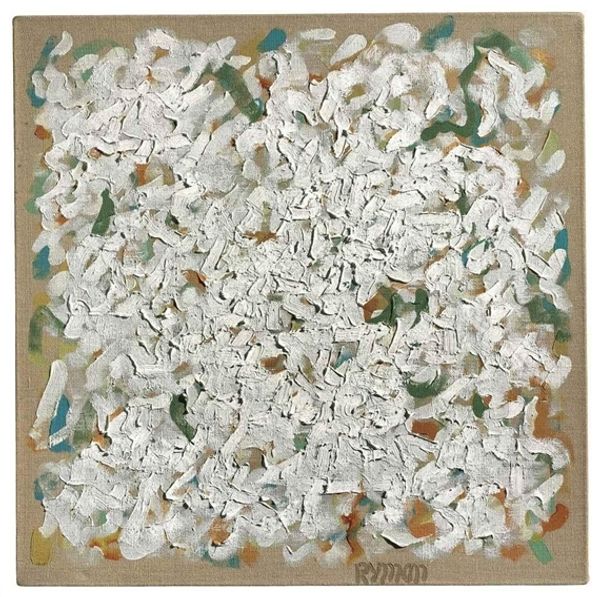 This 'Untitled' work was made by Simon Hantai, we don't know exactly when, but it looks to be oil on canvas. What grabs me here is how Hantai seems to have folded the canvas before painting, a bit like tie-dyeing fabric. This process feels so important, it reminds me of how sometimes the best part of making art is figuring out the how, that leap into the unknown. The colours are muted, blues, greens and yellows creating a soft, dreamlike space. But look closer, and you can see the texture of the canvas, the subtle shifts in tone, the way the paint catches the light. The white areas, in the shapes of leaves, really pop. It feels like a conversation with artists like Joan Mitchell, who were also pushing the boundaries of abstraction. For me, this piece embraces the beauty of the unpredictable. It’s about letting go and embracing the happy accidents that happen along the way.