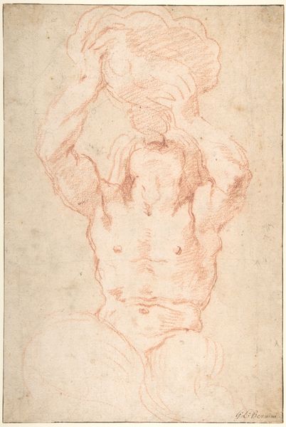 Editor: Here we have an intriguing piece—*Study of Nude Figure in Front View Looking Upward; Study of Torso and Left Arm*, a drawing in charcoal from the 17th century, attributed to an anonymous artist. It has a definite anatomical focus, almost like a Renaissance workshop sketch. How do you interpret this work? Curator: Well, considering this within the context of academic art training during that period, these kinds of figure studies were fundamental. They served a clear socio-political purpose – to instill a sense of idealized human form, drawing heavily from classical ideals that reinforced power structures. We must consider, though, that artistic "freedom" was constrained by the patronage system, so even anonymous works indirectly support a particular worldview. Does it strike you as detached or sterile? Editor: Detached, definitely. I get a sense that it's less about the individual being depicted, and more about mastering the depiction itself, adhering to an established set of aesthetic rules. Curator: Exactly. Consider the power dynamics implicit here: a presumably male artist studies a nude model, codifying ideals of beauty and masculinity, intended to shape public taste and inform further artworks commissioned often by equally male patrons. It isn't a neutral exercise, but one loaded with historical and societal meaning. Think of it as propaganda for the powerful, rendered in charcoal. Who has the power to decide what constitutes beauty or artistic value? Editor: That's a powerful point! So it’s less about capturing reality and more about constructing an image of authority. Curator: Precisely. And understanding that construction, those power dynamics, is crucial to understanding the history of art, and how art participates in our visual culture still today. Editor: That's given me a whole new perspective. I always considered such drawings technical exercises but failed to think about their cultural implications. Curator: Seeing art within the structures of its creation opens new possibilities for critical engagement, enriching our perception beyond the visual surface.