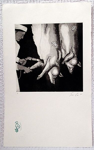 This image, made by the Kukryniksy collective, probably in the 1940s, is a stark work in ink. The artists use a limited palette to deliver a strong message, relying on the power of line and contrast. It reminds us that artmaking is a process of choices and decisions, about what to include and what to leave out. The texture here isn’t about impasto but about the energy of the line. See how they use thin washes of ink to give depth to Hitler's uniform, and then scratch out the destroyed tanks with frantic, almost violent marks? This is all about immediacy, like they are trying to capture a feeling more than a likeness. Look at the melting clock in Hitler's hands: it could be a nod to Dali, but here it’s pure political commentary. The line that makes up the broken tree branch above Hitler is beautifully descriptive. It is a metaphor for broken ambition, a motif borrowed from German Romanticism, perhaps. Ultimately this piece proves that art is always a conversation with what came before. It's about artists responding to each other across time, isn't it? It asks more questions than it answers, and that’s what makes it stay with you.