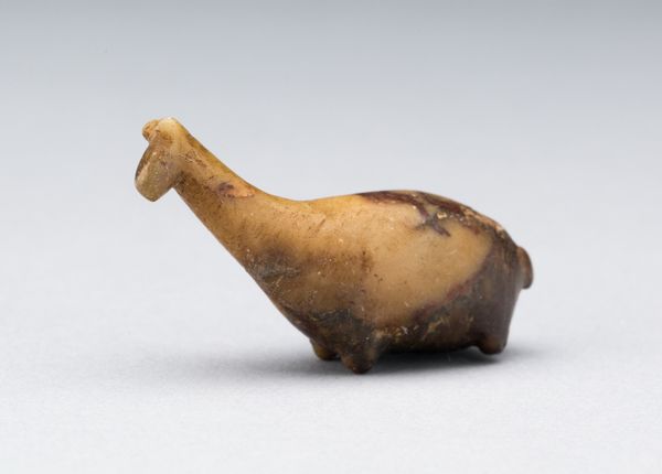 This whistle was made by the Veracruz people of ancient Mexico, formed from humble clay. You can immediately appreciate the handwork involved in creating this small sculpture. The soft, granular texture of the fired clay invites you to imagine the artist carefully shaping the form, perhaps using simple tools to refine the details of the animal's head and body. The addition of a small hole turns this sculpture into a functional object. We can only guess at the social significance of this whistle. Was it a child’s toy, or did it have a role to play in more serious rituals? The very act of creation, taking earth and transforming it into a meaningful object, would have imbued it with special value. This whistle reminds us that even the most everyday materials, when combined with skill and intention, can become powerful expressions of culture and creativity. It challenges us to look beyond the traditional boundaries of art and appreciate the artistry inherent in objects made for everyday life.