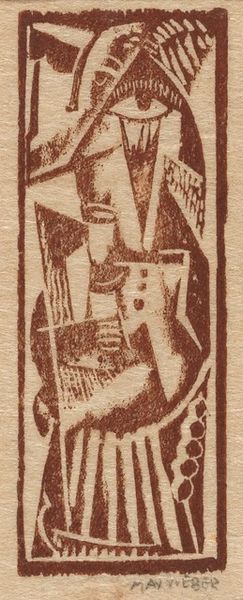 Editor: Here we have Wanda Gág’s woodcut print, "Bookcase", from 1929, now residing at the Minneapolis Institute of Art. The stark black and white creates such high contrast. What stylistic choices stand out to you when you look at this piece? Curator: The power of this image resides, in part, in its restricted palette and the graphic boldness of line. Consider how Gág exploits the intrinsic qualities of woodcut – the crisp, clean lines achievable with the medium. Observe the textural variation, achieved through different cutting techniques. How do these graphic contrasts enhance the image? Editor: It’s interesting how she suggests depth through line alone. Is there a term for that kind of style? Curator: Indeed, and think about how the organization of shapes and lines can function as language. One could approach it by discussing the graphic structure; notice that Gág uses varied thicknesses and arrangements of parallel lines. This builds form but simultaneously flattens space. Does this strategic contradiction offer something conceptually? Editor: That’s a great point! It creates visual interest by contrasting the illusion of depth with the undeniable flatness of the picture plane. What did you mean earlier about how textural variation enhances the image? Curator: Observe the varied marks – the dense, almost velvety blacks versus the areas where the wood grain subtly registers. It isn't simply about representation. The materiality declares itself! Do you agree? Editor: I see it now! The textures almost seem to add to the story of the objects in the image. Thank you, this perspective has enhanced my understanding. Curator: It's a rewarding piece to closely examine, and approaching it from its formal qualities brings a heightened appreciation.