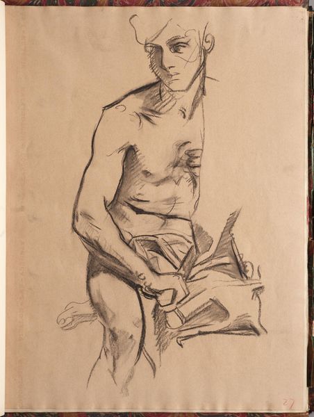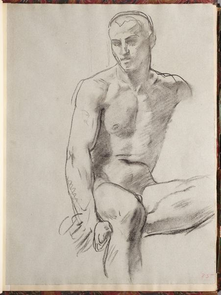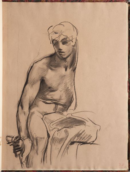 Editor: This is John Singer Sargent’s "Study for Seated Angel at Left, 'Israel and the Law,'" housed at the Harvard Art Museums. It seems like a preliminary sketch. What stands out to you? Curator: Consider the angel's downward gaze, the staff he grips—a suggestion of authority, perhaps? Sargent is invoking a potent visual language here. Angels signify divine will, and the "law" is often depicted as a stern, patriarchal figure. What does this juxtaposition suggest? Editor: Maybe a tension between divine mercy and human justice? Curator: Precisely! Sargent masterfully uses familiar symbols to create a complex interplay of ideas. The unfinished quality adds another layer, inviting interpretation. Editor: It's amazing how much meaning he packed into a simple sketch. Curator: Indeed. Visual symbols can have lasting emotional and cultural significance.