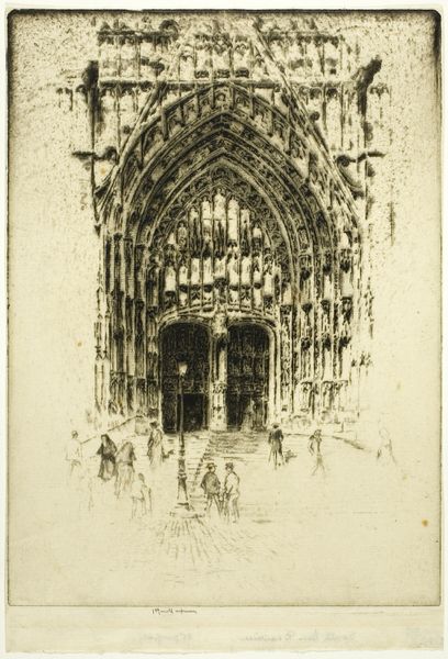 John Taylor Arms made this print, "La Trinité, Vendôme," using a pretty dry and precise method. It looks like he's just laying down line after line, building up this whole scene. It reminds me that making art is often about taking things one step at a time, trusting the process. I'm drawn to the incredible detail, how each line adds to the texture of the stone. It's almost like you could reach out and touch the rough surface of the cathedral. Look at the way he’s captured the light, especially around the main portal. There's a real sense of depth and space created through the density of the lines. You know, looking at this, I’m reminded of some of the architectural drawings of Piranesi, but with a much more subdued emotional intensity. It makes you think about how artists are always in conversation with one another, riffing on the same themes and subjects but finding their own unique way of expressing them. It's a reminder that art is all about seeing the world in new and unexpected ways.
