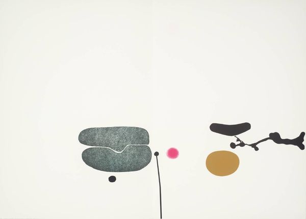 Editor: This is Alexander Calder's *Antennae with Red and Blue Dots*, a suspended mobile. It feels playful, almost like a dance. What sociopolitical forces do you think shaped his artistic vision? Curator: Calder, working amidst social upheaval, offers us a chance to reconsider definitions of art itself. Does the inherent movement of this piece challenge the static, often patriarchal, historical art world? Editor: That's interesting. So the movement isn't just aesthetic; it's a statement? Curator: Precisely! Think of the societal constraints of his time. Does this mobile, free from those constraints, represent liberation and defiance? Editor: It's like he's dismantling expectations, one balanced piece at a time. Thanks, I never thought of it that way! Curator: Exactly! Considering art as a response and challenge to power structures can be very rewarding.