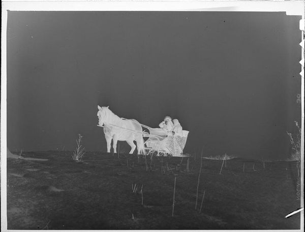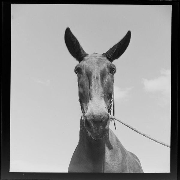 Editor: This is Jack Gould's small, untitled silver gelatin print of a mule. The inverted tones give it such a ghostly presence. How do you interpret this work in its historical context? Curator: Well, consider photography's evolving role. Was Gould aiming for scientific documentation, or something more subjective? How does exhibiting this image, stripped of context, shift its public meaning? Editor: So, the image's meaning depends on how it's presented and who's viewing it? Curator: Precisely. Its power lies in its adaptability. The photograph transforms from documentation into art. Editor: That's a helpful perspective, thank you. Curator: My pleasure. It's fascinating how a simple image can reflect so much.