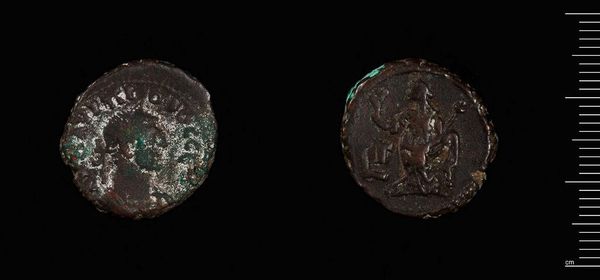 Curator: This is a coin of Kassandreia under Septimius Severus, currently held in the Harvard Art Museums. It weighs just 5.73 grams. Editor: It has a somber presence, doesn't it? The worn texture speaks of time, and the faint outlines suggest stories half-forgotten. Curator: Absolutely. Coins like these weren't just currency; they were tools of propaganda, designed to disseminate power and project imperial authority to a wide audience. Editor: The materiality is intriguing. The coin’s degradation reveals its base elements, speaking to the economic and social realities of its production and use. Curator: Precisely. The wear and tear are not flaws, but rather evidence of labor, trade, and the everyday lives of people under Roman rule. Editor: It makes you wonder about the hands it passed through. Curator: Indeed. This coin offers a tangible connection to the past, reminding us that even the smallest objects can hold immense historical and social significance. Editor: A tiny object with a big story.