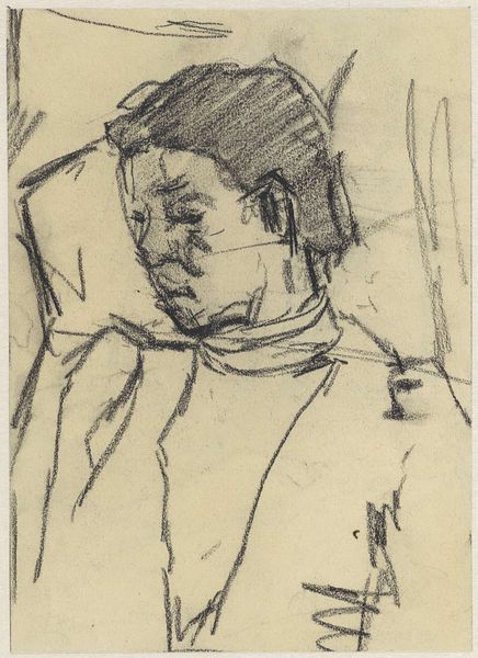 This self-portrait by Béla Czóbel, made with graphite on paper, captures the artist's likeness through a dense network of lines. Graphite, a form of carbon, is valued for its ability to leave a mark with minimal pressure, allowing for quick, expressive sketches. Czóbel’s technique is particularly notable. The vigorous, almost frantic application of graphite creates a textured surface. This isn’t about smooth illusionism but rather a raw, immediate capturing of form and emotion. The repeated strokes suggest a process of searching and refining, mirroring the artist’s internal exploration. The social context of this work ties into the rise of expressionism, where artists sought to convey subjective experiences and emotional intensity. By emphasizing the act of drawing itself, Czóbel aligns with a broader movement that valued authenticity and direct expression over traditional academic refinement. This piece stands as a testament to the power of simple materials, transformed through process into something deeply evocative.