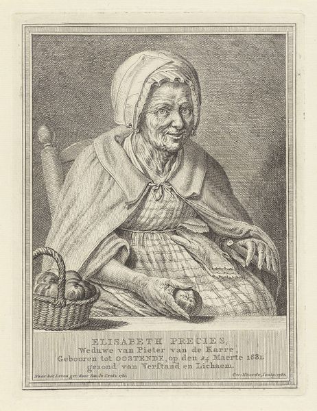 Editor: This pencil drawing, "Zittende vrouw met mes," which translates to Seated Woman with a Knife, made by Abraham Delfos between 1741 and 1820, strikes me as intensely melancholic. Her posture, the light…it all feels heavy. What stands out to you as you look at it? Curator: The context in which such an image might have circulated is key here. We see a genre scene, seemingly depicting a domestic interior. Yet, drawings like these weren't always straightforward depictions of everyday life. Consider the rise of print culture in the 18th century. How might this image function within that socio-political landscape? Editor: It’s interesting you mention print culture. The woman’s face does seem rather expressive; was it common to share these portrait drawings with wider audiences at that time? Curator: Precisely. This raises questions about the subject's social standing and the drawing's intended purpose. Was this commissioned, perhaps as a family record or memento mori, or did it cater to a broader, perhaps bourgeois, market interested in sentimental genre scenes? How do those institutions affect your reception of the image? Editor: Thinking about that affects how I see her, yes. It’s less an intimate portrait now and perhaps more of a constructed image intended for public consumption. That changes the mood somewhat…it feels staged. Curator: Indeed. The placement of the knife, her averted gaze – could these be symbolic elements playing into popular narratives of virtue, labor, or even poverty prevalent at the time? Understanding those codes allows us to appreciate how artists like Delfos participated in shaping social perceptions. Editor: That’s such a different way of considering this drawing. It’s less about the artist's emotion and more about how it functioned within its specific historical and societal moment. Thank you for highlighting that! Curator: Exactly! By exploring these avenues, art becomes a window into the past, reflecting the complex interplay between artistic intention, social forces, and institutional frameworks.