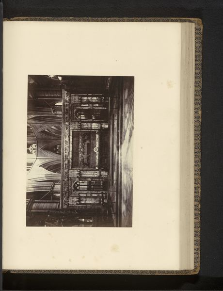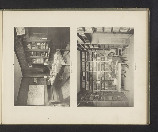 Editor: Here we have “Interieur van The Commons Library,” a photograph taken by John Harrington before 1869. There’s something almost dizzying about the composition, all these books receding into the distance…it's like getting lost in knowledge itself. What do you see in this piece? Curator: Ah, yes, it is quite the rabbit hole, isn't it? To me, it whispers of that Victorian yearning for order and control in a world spinning ever faster. See how Harrington uses the architecture of the library – the lines of the shelves, the ornate ceiling – to create a sense of endless depth? It's like he's trying to map the whole of human intellect! Do you get that sense too, or am I just waxing lyrical about books again? Editor: No, no, I see it! It’s like the space is meant to hold all possible ideas. Was pictorialism, with its emphasis on beauty and atmosphere, a common choice for depicting libraries back then? Curator: Indeed, this choice aligns with the Pictorialist movement! They were trying to elevate photography to the level of fine art, blurring the lines between reality and imagination, much like a great book does, right? Think about it – they used soft focus, manipulated the printing process… anything to make the photograph feel more… evocative. Here, it's less about sharp detail and more about conveying the mood of the space, the almost sacred atmosphere of learning. What kind of impression does it leave you with? Editor: It makes me think about how libraries today are so different. We’re more about accessibility, it seems, than awe. This feels like a temple of knowledge, almost secretive. Curator: Precisely! A perfect thought. We are both leaving enriched by such perspectives!