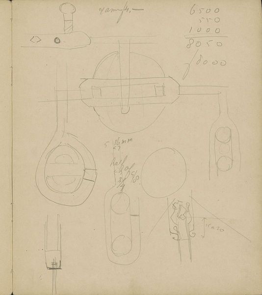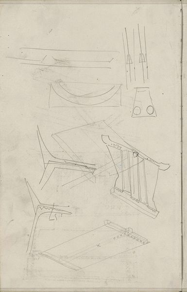 Curator: Welcome! Here we have “Architectuurstudies en decoratieve patronen”, or “Architectural studies and decorative patterns,” a drawing dating from around 1905 by Carel Adolph Lion Cachet. Editor: Well, looking at it, my first thought is of architectural blueprints. There’s a sense of both precision and freedom in these sketches; all those soft pencil lines on this seemingly basic paper. Curator: Absolutely. Cachet, a prominent figure in the Dutch Art Nouveau movement, was deeply involved in redefining artistic expression. This drawing really showcases how the focus shifted from merely depicting reality to really trying to create an immersive artistic environment. He later abandoned drawing and printmaking for his work with textiles and interior design, in an effort to make art more directly useful. Editor: You can see that shift beginning here. These architectural studies appear functional, of course, but then they are interwoven with those intricate decorative patterns. It blurs that supposed hierarchy between art and craft. It makes you wonder about the workshops where these patterns might have been translated into material form, who labored to bring them to life. Curator: Exactly, these designs reflected broader social aspirations. This drawing would have offered a tangible link between the growing Dutch national identity and international artistic trends of the era, especially at exhibitions. This piece would have been easily accessible to both middle and working class Dutchmen, to expose people to the best of modern design. Editor: It makes me consider how radical this level of engagement with practical applications of art would be considered even today. We have to ask who is deemed “craftsman” and who is the celebrated “artist” – and whether or not those classifications matter. What implications did that categorization have, both then and now? Curator: Ultimately, I see it as a reflection of art’s vital role in cultural expression, both now and a century ago. It demonstrates how artwork reflects shifting societal and political winds, constantly altering our perspectives. Editor: I see how an unassuming pencil sketch on paper can offer insights into artistic experimentation, labor, and how the turn-of-the-century craft movement challenged industrial standardization. Fascinating.