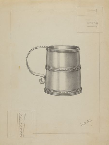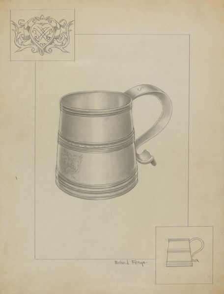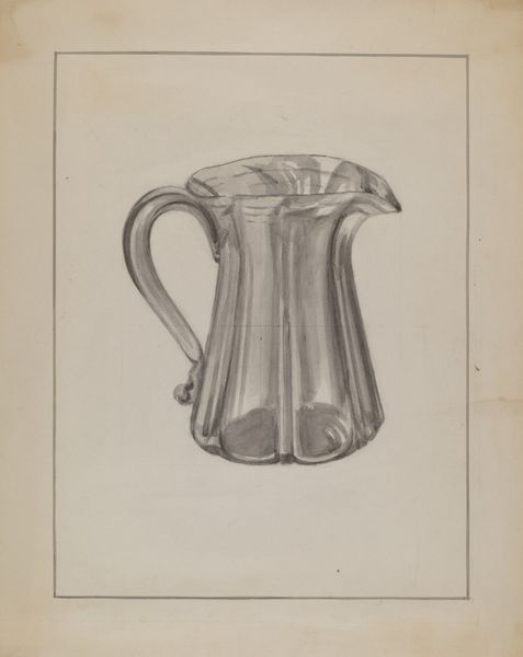 Simon Weiss created this drawing of a silver creamer with graphite on paper. At first glance, the image presents a study in contrasts: the gleaming, rounded form of the creamer juxtaposed against the flat, matte surface of the paper. This contrast is softened by a skillful use of tonal variation to create a striking effect. The creamer's volume is described using precise shading techniques to convey the metallic sheen of the object. The eye is drawn to the subtle gradations of light and shadow that contour the creamer, and the eye is also led to the handle with its rectangular, rigid form, offering a counterpoint to the smooth curvature of the vessel. The drawing's appeal rests on the formal tension between representation and abstraction. The meticulous rendering of texture invites us to consider the semiotics of value: the creamer symbolizes luxury and domesticity, while the drawing translates these cultural codes into a language of line and tone. The drawing then transcends mere depiction, becoming an exploration of form, material, and the very act of seeing.