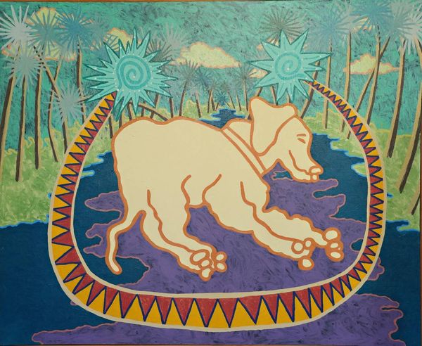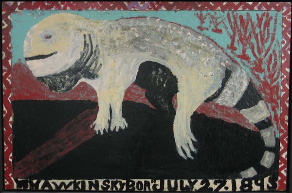 William Hawkins made this “White Rhino” painting, its date unknown, with house paint on Masonite. Look at how the paint is applied – so directly, with such an economy of means! It’s clear that Hawkins wasn’t trying to trick us into thinking we were looking at a real rhino, he’s more interested in the *idea* of a rhino, and how he can represent that idea through his chosen materials. I love the way he's handled the rhino's hide: white paint, dabbed and scumbled to give it texture, divided by clean, confident lines of brown. And that background! A crazy, churning mass of green, red, and black that could be trees, or maybe just a feeling. Hawkins isn’t interested in blending colors, he just puts them on, raw. Hawkins reminds me a bit of Henri Rousseau, another self-taught artist who wasn't afraid to embrace his own vision. Both artists create worlds that are both familiar and strange, real and imagined. And for both of them, art isn’t about getting things “right”, it’s a conversation, an ongoing experiment.