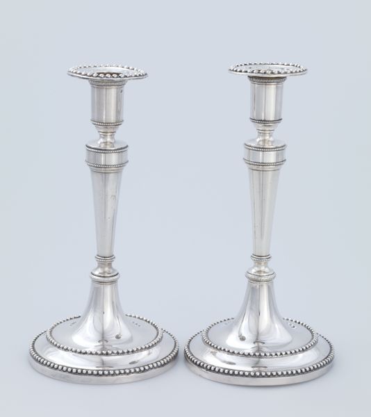 These matching silver candlesticks, made by Thomas Merry I, reflect the 18th-century fascination with symmetry and light. Consider the candle itself as a potent symbol. In darkness, it represents enlightenment, hope, and the divine spark within us. Throughout history, the act of lighting a candle has been imbued with sacred meaning, from ancient rituals to modern religious ceremonies. We see echoes of this in Renaissance paintings, where candlelight illuminates scenes of revelation, and even in our contemporary vigils, where candles symbolize remembrance and solidarity. Note how the octagonal base grounds the candlesticks, giving them a sense of classical balance and order. The steady flame rising from this base evokes a feeling of serenity and contemplation. Like an eternal flame, it transcends its immediate function, engaging our subconscious with primal concepts of illumination. The candlesticks thus become more than mere objects. They are carriers of cultural memory, echoing across time with symbols of light.