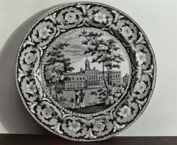 Helmut Hiatt made this plate of the Park Theatre in New York, and like a lot of art, it’s about framing. Here, it’s literally framed with a garland of oak leaves and acorns around the edge! It’s fascinating how the same scene can change depending on where you put it. I'm not sure how it was made, maybe transfers, the image is a stark monochromatic picture, like something from a newspaper. Look at the way he's captured the texture of the leaves, giving them depth and movement with simple shading. The plate is so old, and yet, it feels so modern. You can see the echoes of other artists who played with images on plates, like Picasso! Thinking about the utility of plates makes you wonder about art's purpose. It’s not just something to look at; it’s something to use, something to live with, it's a conversation. And that, I think, is what art is all about: conversations.