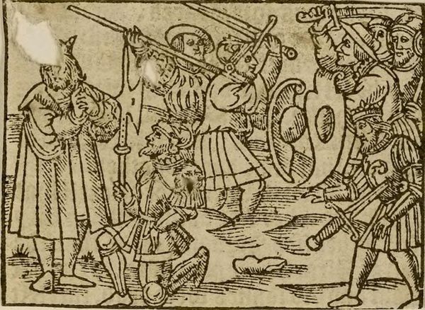 Curator: Here we have "Illustration I," an anonymous piece from the Harvard Art Museums. It's an intense scene, rendered in what appears to be woodcut or engraving. Editor: Yes, the stark black and white really amplify the drama. The composition, while busy, directs the eye right to the figure on the central cross. Curator: The cross itself is central, but the crowd, their faces, and the architecture in the background all point to the power dynamics inherent in religious and political authority. Editor: I see your point, but consider the textures. The lines, tightly packed in some areas, loose in others, create a visual rhythm that's quite compelling independent of the narrative. Curator: Perhaps, but the subject is unavoidable. The suffering, the injustice, these are powerful social commentaries, particularly depending on the period in which it was created. Editor: Right, and it's fascinating to consider how such a simple medium can convey such complex ideas. Curator: Indeed, the raw simplicity and inherent message makes it a powerful work. Editor: Absolutely, a stark reminder presented in a unique aesthetic format.