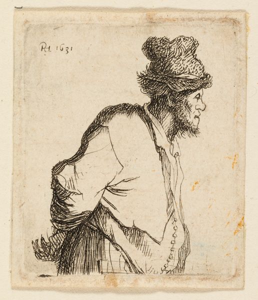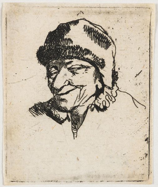 Editor: Here we have Cornelis Bega's miniature etching, "An Old Woman with a Fur Cap." It's incredibly small, almost jewel-like, and the detail is astonishing. What strikes you most about this tiny portrait? Curator: It feels like a stolen moment, doesn’t it? Bega captures not just likeness, but a whole world of experience etched on that face. The fur cap itself is so textural, contrasting with the delicate lines defining her age. She seems to be looking off at something, perhaps a memory? Editor: I hadn't thought of it that way, but yes, there is a reflective mood. It's amazing how such a small piece can evoke so much! Curator: Exactly! It's a testament to Bega's skill, isn't it? To pack a lifetime into such a tiny frame. I'm wondering what she might be thinking about.