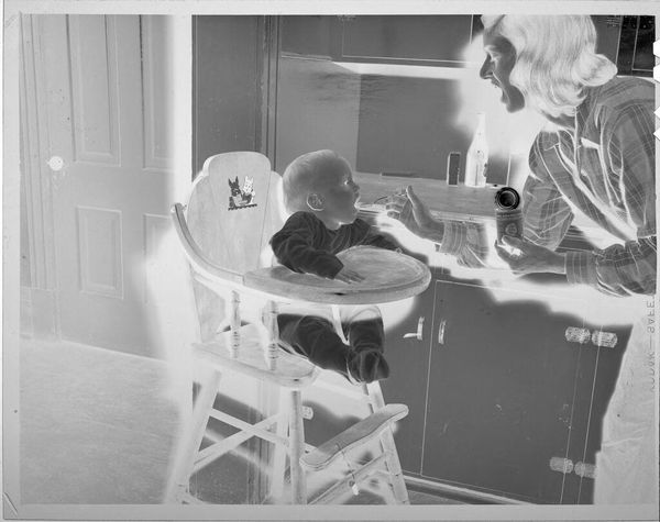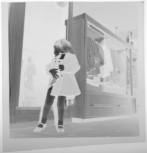 Editor: This gelatin silver print, *Untitled (girl with doll and baby carriage)* by Lucian and Mary Brown, has a dreamlike, almost ghostly quality. The inverted tones are so striking. What can you tell me about it? Curator: The photographic process itself becomes central here. Consider the labor involved in producing this image – the mixing of chemicals, the act of printing, the choices made in the darkroom. How does the materiality of photography shape our understanding of childhood and domesticity represented here? Editor: That’s a great point. I hadn’t considered the process so much. So, are you saying the process itself is part of the meaning? Curator: Exactly. The image isn't just *of* a girl; it's a product of specific materials and techniques, reflecting broader cultural attitudes towards labor and reproduction, even childhood itself. Thinking about the means of production gives us a new lens to see the subject. Editor: Thanks, that's helpful.