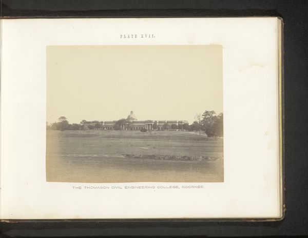 Curator: Here we have "Gezicht op waterwerken in de Ganges", which translates to "View of Waterworks on the Ganges". This photograph, attributed to Thomas George Glover, dates back to before 1867 and utilizes the gelatin-silver print medium. Editor: Well, isn't that a serene scene! A melancholic stillness seems to permeate it. It looks like time is standing still, or maybe it's already long gone, just like old photographs tend to imply. Curator: Indeed, that pervasive stillness likely emerges from the photograph's composition. Note how the horizontal lines of the canal and the horizon create a balanced, almost symmetrical division of space. It anchors the gaze, producing a certain visual and emotional stability, even if slightly sepulchral. Editor: I see what you mean. It's like the perspective just drags you into this placid body of water, making you consider where it's going or maybe what it's carrying along the way. This monotone effect and composition is strangely comforting, too! Curator: The Ganges, a central element, bears great symbolic weight in Indian culture. Here, however, the representation focuses more on the utilitarian infrastructure erected by engineers and workers rather than the river’s inherent spiritual significance. This almost mundane view of a sacred site is...provocative. Editor: You are so right! This challenges us, doesn’t it, the way Glover juxtaposes spirituality and human-led modifications in the environment? It seems to invite meditation on nature’s transformation and the inevitable impact of our creations on what exists. There is beauty and functionality on full display! Curator: It's a nuanced perspective that pushes viewers to confront development, progress, and our relationship to landscape. Looking closer at the monochrome palette... what feelings come up for you? Editor: Mmmh! An era is certainly coming back; its tones convey this palpable sense of bygone eras that make me muse over those who engineered it! Well, thank you for shedding some light on it all! Curator: And thank you, it’s so enriching to revisit Glover’s view on Ganges waterworks with someone so sensitive to atmospheric composition.