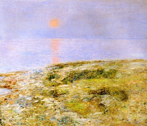Claude Monet painted ‘At Val Saint-Nicolas near Dieppe, Morning’ with oil paints on canvas. These were of course, industrial materials, made in factories, distributed widely and sold at a reasonable price. It is interesting to observe Monet's brushstrokes, and the way he layers paint to capture the effects of light on the cliffs and sea. The texture of the brushstrokes adds depth and movement to the scene. Monet, like other impressionist painters, was concerned with capturing fleeting moments and sensory impressions, rather than achieving perfect fidelity. The looseness of the brushwork and the visible layering of colors, all contribute to the character of the work. Consider that the paintings in this style required a move outdoors, away from the studio and the academy. Monet often worked en plein air, directly in front of his subject. The artist's engagement with the landscape and the act of painting become part of the artwork's meaning. Ultimately, by focusing on the materials and processes involved in creating the work, we gain a deeper understanding of Monet's artistic vision.