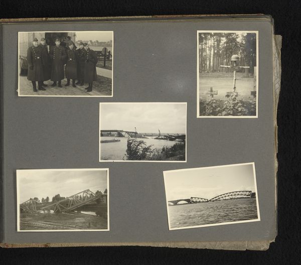 This is Vaartocht, a collection of photos on a page in an album. What strikes me first is the way the photos are arranged, kind of like a constellation of memories. Each picture is its own little world, but together they create a larger narrative. The monochromatic tones give a sense of distance, like peering into the past. Look at the edges of the photos, how they're slightly frayed. It makes me think of the way memories themselves can become worn and softened over time. The handwritten notes beneath some of the images, “De Moena” and “Baai van Booton,” feel so personal and intimate, like whispers from another time. There’s an immediacy in these small captions that contrasts with the grand panorama in the image, and this tension gives the piece a lot of power. This work reminds me a little of Gerhard Richter’s photo paintings, the way he blurs and obscures images to explore the unreliability of memory. It's about how we piece together fragments of the past to make sense of the present.