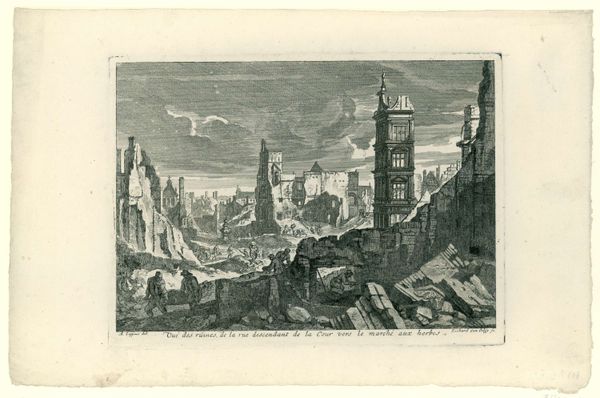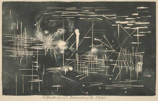 Beatrice Harper Banning made this print, "Blackout," with a real sense of drama using an etching technique. The mark making has a raw, almost unfinished quality to it, which only adds to the sense of a moment captured in time. Looking at the sky, you can almost feel the density of the clouds, scratched into the plate with such energy. Then, those beams of light cutting through the darkness - each one slightly different, some wavering, some strong. This print isn't just about what it shows, but how it feels. There’s a tension in the lines, a vibration that makes the scene come alive. It reminds me of Piranesi’s etchings; that same use of architectural spaces to convey a sense of emotional intensity. "Blackout" is not just an image; it’s an experience.