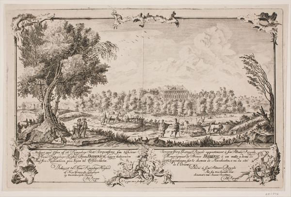 Curator: Right, let's look at this intricate etching by Stefano della Bella. It’s titled 'Fourth scene, the sea, from 'The marriage of the gods’ and was created around 1637. What jumps out at you? Editor: Chaos! Organized chaos, perhaps? The figures are playful but it feels a bit unsettling with all those bodies contorted in impossible ways against this almost hallucinatory backdrop. Curator: I see what you mean. There’s a dynamism that teeters on the edge of something slightly…feverish. This was part of a series commemorating the marriage of Ferdinando II de’ Medici and Vittoria della Rovere, so think extravagant courtly entertainment, transformed into print. Editor: So propaganda disguised as art. This seascape with its frolicking figures becomes a stage to legitimize the power, where everything's orchestrated, from the costumes to the very choreography of pleasure. And the title screams theatrical spectacle, really. "Quarta scena di mare"...the fourth scene, the sea. Curator: Exactly. Della Bella captures the lavish theatrical productions common during the Baroque era. Etching allowed him to disseminate these images, spreading the Medici's cultural influence. The level of detail, those feathery palms and craggy cliffs… Editor: It is exquisite, but I keep coming back to the figures. They appear to dance on the shore and cavort in the water without a care in the world. The elite indulge, while those without access struggle, as always. Is it simply revelry or willful obliviousness? Curator: A complex question, perhaps an invitation for critical reflection today. Then, its immediate function was clear. Now, viewed through the lens of our time, that opulence cannot help but suggest broader social questions of consumption. Editor: Absolutely, its ability to still evoke that kind of friction over centuries demonstrates its staying power. Curator: A spectacle frozen in ink, forever sparking new thoughts. Editor: That friction is exactly why it still resonates. Thank you for guiding my impressions!