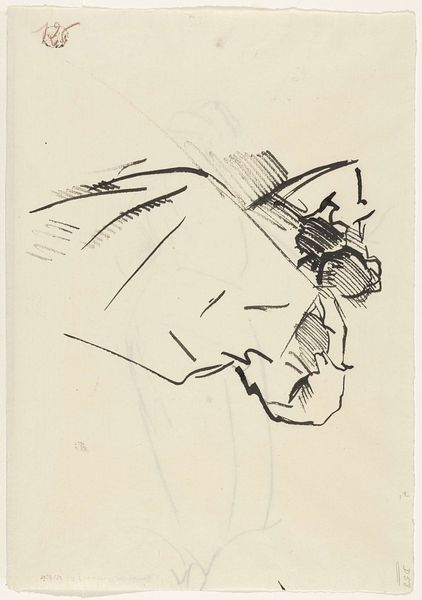 Curator: This is "Kussend stel en drie mannenhoofden," or "Kissing Couple and Three Male Heads," a pencil drawing by Leo Gestel, created sometime between 1891 and 1941. It resides here at the Rijksmuseum. Editor: My first thought? Quiet. Intimate. It feels like peeking into someone's private thoughts, a little voyeuristic almost. There's a simplicity to the lines, almost like whispers on the paper. Curator: Absolutely, that feeling of intimacy is palpable. The light pencil work enhances this; it's a fleeting moment captured, not a grand pronouncement. And in terms of representation, we can interpret the figures from a gender and relational perspective. Who are these people to each other? Editor: It does make you wonder about the narrative, doesn't it? The "kissing couple" seems central, but those other heads, floating almost...are they memories, spectres, alternate realities? Like different aspects of a single relationship. That's where the imagination takes over, for me. It's like Gestel gives us the bare bones of a story and we flesh it out. Curator: Considering Gestel’s life and artistic evolution, one might analyse how these portrayals resonate with broader discussions of societal norms during that period. What types of connections was he hinting at by placing them all in the same setting? The ambiguity is, indeed, significant. The choice to render everyone in pencil creates this very delicate network of relations. Editor: It's true. Even though it's a relatively simple composition, you get this emotional density. Looking at that line quality too-- he really captures the light and shadow. You feel the shapes without them being fully formed. Makes the people seem like ghosts, almost ephemeral. The figures are real and unreal at the same time! And is it just me or is that kissing couple oddly placed? They are not really the focus of the picture if we're judging from the compositional aspect. Curator: That positioning makes a strong visual argument, actually. Gestel might very well have aimed to emphasize that relationships—kissing or other—can be viewed as existing at the margins of the greater whole. It brings an interesting perspective on interpersonal dynamics against a broader socio-political backdrop, wouldn’t you agree? Editor: Totally. It starts out looking like just a quiet moment, then the layers begin to peel back. Curator: Well, this artwork leaves me pondering the silent stories behind the simple lines. A reflection on closeness, amidst the noise. Editor: For me, it is a little reminder that even the simplest sketches can hold whole worlds, emotions, narratives. You just have to be willing to look.