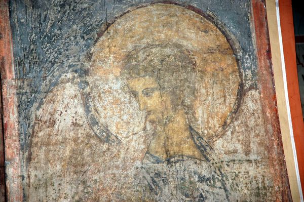 Andrei Rublev painted this image of Sabbas the Sanctified as part of "The Last Judgement" in the Assumption Cathedral in Vladimir, Russia, using fresco techniques. Fresco is a demanding medium: pigments are applied to wet plaster, binding them chemically as it dries. The luminous effect you see results from this process. But look closely, and you will see it is also a fragile one. Over centuries, the fresco has degraded, adding a layer of texture like the craquelure on an old master painting. This sense of age is part of its power. Rublev was working within a long tradition of icon painting. This was not just a job, but a spiritual practice. He and his assistants would have followed strict guidelines, using established techniques to evoke the divine. The intense labor and devotion involved are palpable, reminding us that even the most seemingly ethereal images are rooted in earthly effort. This fusion of material, process, and deep cultural significance dissolves any rigid boundary between art and craft.
