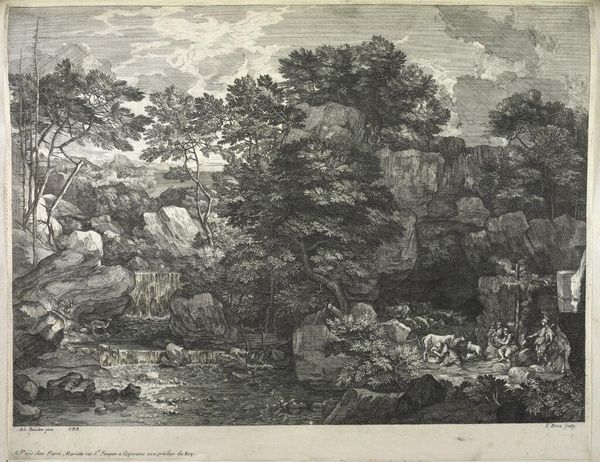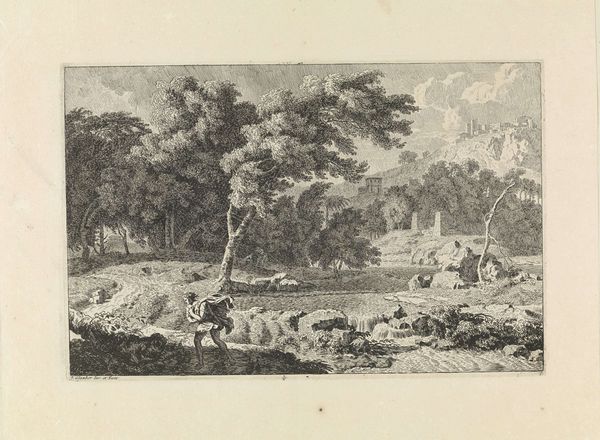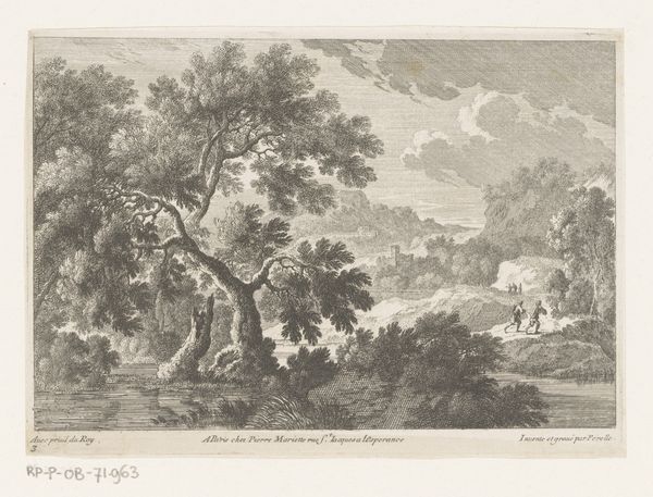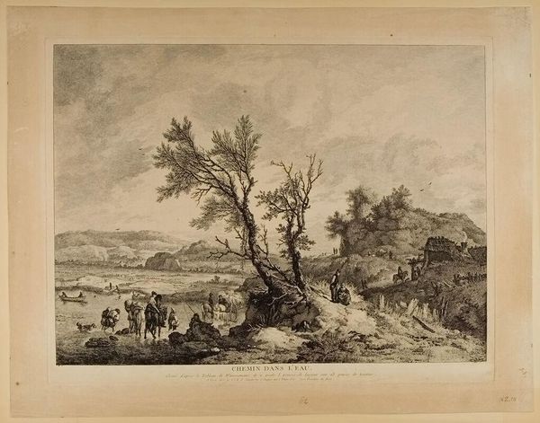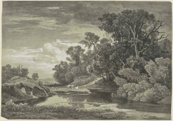 Editor: So, this is "Angler's Nook" by James Carter. It's a lovely landscape scene, and the soft monochrome palette creates a really peaceful atmosphere. What grabs you when you look at it? Curator: Funny you say 'peaceful' – it does evoke a certain quietude. I see a dialogue between man and nature, a patient communion. The angler, nestled in the nook, becomes almost a part of the landscape itself. It's about observation, patience, and a quiet understanding of the world around us. Do you think he caught anything? Editor: Maybe the point isn't the fish but the feeling? I hadn't thought about the angler as part of the scene, it's so still. Curator: Precisely! It's a lovely, understated meditation on our place within the grand scheme, a reminder to sometimes just... be.