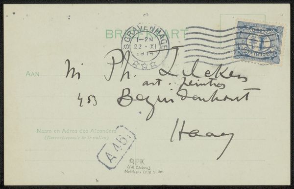 Léon Paschal made this postcard to Philip Zilcken at some unknown time, with ink on paper. The stamp and postmark have an appealing geometry, especially contrasted with the rounded, soft script that makes up the address. You can see the pressure of the pen in the varying line weights of the handwritten parts. The ink is darker where the pen lingered, almost as if the writing itself is a kind of drawing. There’s a rhythm to the hand that holds the pen, almost like a dancer improvising. The overall effect is informal and friendly, not overly concerned with perfect legibility, and all the more human for it. I think of Cy Twombly’s painterly scrawls, or even some of the text-based works by someone like Ed Ruscha. There’s a real art to something that's halfway between writing and image making.