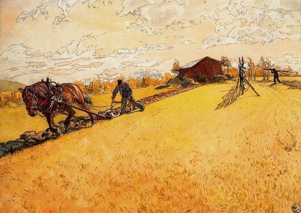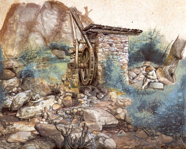Editor: Here we have Sir John Everett Millais’s "Winter Fuel," an oil on canvas completed in 1873. It depicts a woman sitting on a cart filled with logs. There’s something melancholic about the composition. What do you see in this piece? Curator: Initially, I am struck by the strategic arrangement of forms and colors. Observe how Millais uses the diagonal line of the loaded cart to bisect the pictorial space, creating a dynamic tension between the foreground and the recessive planes of the landscape. Editor: The textures also seem significant, like the rough bark of the logs contrasting with the woman’s smooth clothing. Curator: Precisely. Note the textural interplay; the rough-hewn logs provide a tactile contrast to the smooth surface of the woman's dress. This juxtaposition enriches the visual experience. Furthermore, the muted palette, dominated by earth tones, establishes a somber mood, subtly augmented by the red in the woman's headscarf—a focal point strategically placed to draw the viewer’s eye. Editor: So, it's the interplay of color, form, and texture, rather than any narrative, that's key? Curator: The narrative, if it exists, is subservient to the formal concerns. Consider how the artist balances light and shadow, creating a visually engaging surface. Are you noticing how Millais is using tonal modulations to create the illusion of depth without the overt theatricality common to academic painting of this era? Editor: It feels like a quiet, deliberate arrangement. I appreciate your insights into how the elements combine to evoke such a contemplative mood. Curator: And I you for prompting a renewed contemplation of Millais' sophisticated formal language.