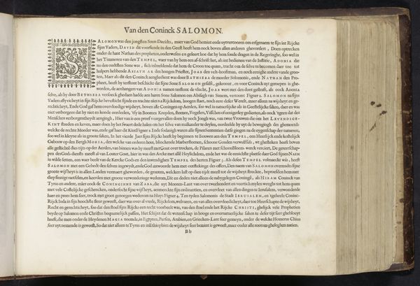 This page comes from Jan Philipsz Schabaelje’s illustrated book, *Vorder geschiedenissen binnen Ierusalem*, printed around the mid-17th century. As a printed page, its materials are simple – paper and ink. But the process of its making is more complex. Consider the labor involved in producing each element: the paper-making, typesetting, printing, and hand-drawn illustration on the letter ‘G’ at the top of the page. The entire book would have been a collaborative endeavor, involving specialized workshops. In terms of social context, printed books democratized knowledge, but were still relatively expensive and required literacy. So, while this book made religious teachings more accessible than ever before, it was still primarily enjoyed by the middle and upper classes. By attending to its making and its place in the world, we can appreciate the intricate web of skills, materials, and social forces that converged to bring this page into being.