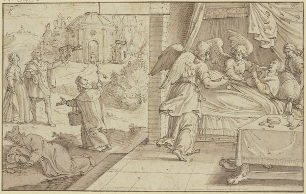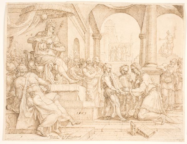 Alessandro Tiarini rendered this drawing, Martyrium, using pen and wash, an echo of sacrifice and authority reverberates. The bishop, enthroned and pointing, embodies divine law, an archetype traceable back to ancient depictions of rulers asserting dominion. The act of martyrdom, a theater of pain and faith, is a potent image, its roots deep in the soil of religious fervor. Consider the gesture of the fallen figure, reminiscent of classical depictions of death, yet here, imbued with Christian symbolism of sacrifice and redemption. This motif of the noble death transcends its immediate context, echoing in the tragedies of antiquity and resurfacing in later artistic explorations of human suffering. It’s a visual language passed down through generations, each epoch adding its own inflection, reflecting our enduring fascination with the boundary between life and death, suffering and transcendence.