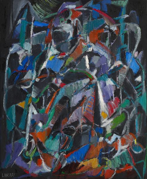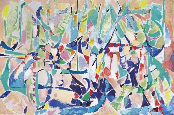Tia Peltz’s painting, “Foxtrot,” captures figures in motion with broad, gestural strokes of oil paint. Born in Winnipeg, Canada in 1923, Peltz was part of a generation of artists who came of age in the mid-20th century, a time of immense social and cultural change. Her expressionist style suggests influences from both European modernism and the American abstract movement, but the subject matter is distinctly representational, suggesting a lively social scene. The title, "Foxtrot," connects the image to popular culture and social dance, a significant form of social interaction and cultural expression during the 20th century. The painting provides a glimpse into the leisure activities of a particular social class and era. Researching the history of social dance and popular music of the time might give us further insights into the painting's cultural context. Ultimately, understanding "Foxtrot" requires us to consider the social conditions that shaped Peltz’s artistic vision.