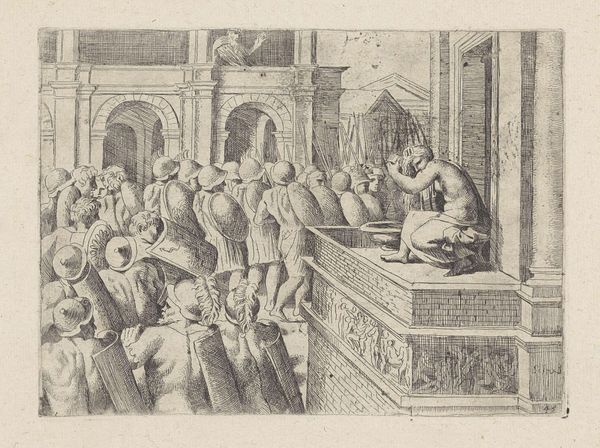 Orazio Borgianni made this etching titled 'David spies on Bathsheba', its date is unknown. The early modern era was a period in which gender roles were rigidly defined and women's bodies were often viewed as objects of male desire. Here, the narrative from the Hebrew Bible is framed within the male gaze. We see David positioned high above, looking down at Bathsheba bathing. The image suggests an imbalance of power, one where David, as king, is free to indulge his desires. Bathsheba seems exposed and unaware of the king’s presence. Consider how the male gaze reduces Bathsheba to an object of visual consumption, denying her agency, and setting the stage for the abuses to follow. The story of David and Bathsheba continues to resonate, inviting us to reflect on themes of power, consent, and the enduring consequences of objectification.