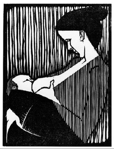 M.C. Escher made this woodcut, Seated Old Woman, using knives and gouges to carve into a block of wood. Look closely, and you can see how the stark contrast of black and white creates a compelling image with an incredible sense of depth and texture. The linear marks are so specific. Notice how each line seems to describe not just the form but also the play of light and shadow. It’s especially evident in the shawl draped over her shoulders, a web of tiny squares playing against the long lines of her skirt. Those lines are alive; they aren’t just marks but convey the feeling of fabric, the way it folds and drapes. The details in her face, etched with lines, tell a story of time and experience. I am reminded of the woodcuts of Ernst Ludwig Kirchner who was similarly fascinated with this medium. Like many artists, Escher shows how a commitment to a certain medium becomes a conversation across time, a back-and-forth of ideas about form, light, and the human condition.
