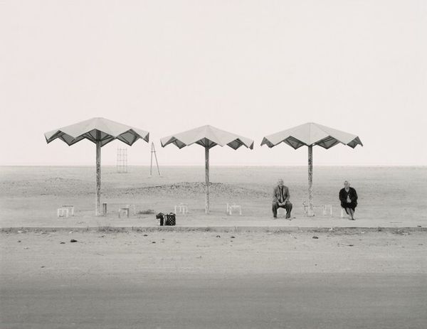 Ursula Schulz-Dornburg made this photograph, Sevan - Wardenis, capturing a bus stop somewhere, sometime, probably with a camera and film. The muted palette almost drains the color, focusing us on form. There’s an incredible stillness, a kind of stark simplicity. I’m drawn to the bus stop itself. It’s a skeletal structure, a sort of sad little stage. The delicate ironwork on top feels almost comically ornamental against the bleak landscape. Look at how the lines of the power cables mimic and extend the lines of the shelter, blurring the boundaries between the built environment and the vast, indifferent landscape. Schulz-Dornburg reminds me a little of Bernd and Hilla Becher, but there’s more mood, and a melancholic edge. Her images aren’t just documents; they’re invitations to contemplate the strange beauty of forgotten places. Art isn't about answers; it’s about lingering in the questions.