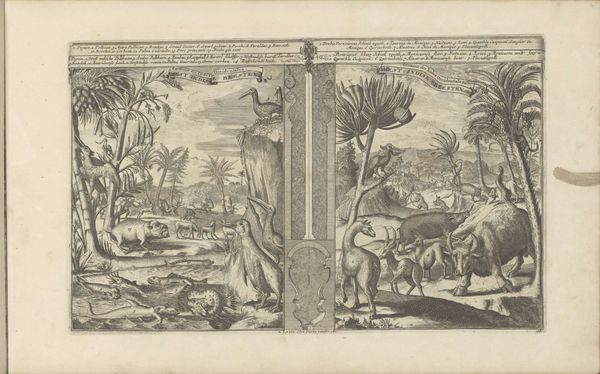 Curator: The Dutch Golden Age wasn't all about serious portraits and landscapes, was it? Editor: Not at all! Take a look at this etching by Gerrit Oortman, made sometime between 1715 and 1813, called "Hoe wordt dit schoon geboomt' verzorgd, door maagden en door knapen! / Een enkle, (die wis zieklyk is,) ligt aan den voet te slapen." It feels so whimsical and light, with these figures scattered in and around the trees, almost like a storybook illustration. What stands out to you in terms of its imagery? Curator: The tree itself becomes a central symbol. Note the figures climbing and interacting within its branches, this links to ideas about the “Tree of Life”. What psychological connection are we seeing, when healthy youths collect the tree’s fruit and sustain one who rests? Editor: I hadn’t thought about the symbolic weight, focusing more on the literal action. Curator: Right, and this imagery, common during the Baroque, recalls classical pastoral scenes, linking to Arcadian ideals of innocence, abundance and an untroubled society. What emotional message is then portrayed? Editor: So it’s not just a picture of people picking fruit; it’s hinting at a deeper cultural longing for a simpler, happier existence? Curator: Precisely! Consider the contrast. We have figures engaging with nature’s bounty whilst in text there is the sense that all is not easily attained. The sleeping youth’s ill health suggests worldly sorrows impact even those in a seeming paradise. Editor: That gives the print so much more depth. I was initially charmed by its playful feel, but now I see there’s a subtle commentary woven in. Curator: Visual symbols reveal cultural continuity and shared human experiences. Images carry so much emotional and historical weight, more than initially meets the eye. Editor: I’ll definitely be paying closer attention to underlying meanings from now on. Thanks for helping me see this artwork in a new light!