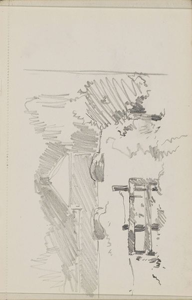 Editor: So this is *Gezicht op de Martinitoren te Groningen* – or a View of the Martini Tower in Groningen, as far as my Dutch goes! – a drawing in pencil by Cornelis Vreedenburgh, probably done sometime between 1890 and 1946. I love how immediate it feels. Like a fleeting impression, capturing a moment. What do you make of it? Curator: Fleeting is spot on! I see a sort of tender observation, like a visual poem scribbled in a notebook. Vreedenburgh wasn't trying to impress, just… capture. And those hazy, almost scribbled trees…they aren't simply "trees," are they? They feel like moods. Reminds me of a rainy afternoon dream. Does it strike you as particularly *Dutch*, though, in its feel? Editor: I guess the tower gives it away! Without that, it could be anywhere, really. But there *is* something… grounded about it. How much of that do you think comes down to the medium itself, the humble pencil? Curator: Good question! The pencil insists on intimacy. No grand gestures here, just a quiet hum. But notice how the sketchiness, that "unfinished" quality, paradoxically gives it a timelessness? It could be from any era. And then there's that solitary tower, piercing the scene. It's not just a building; it's a silent witness, isn't it? Ever-present, guarding the whispers of the city. Do you feel any sense of narrative pulling you in, or is it mainly about atmosphere? Editor: Definitely atmosphere, although I do wonder what was going on in Groningen back then. It’s tempting to fill in the blanks, imagine the figures bustling about. Curator: Exactly! And maybe *that's* Vreedenburgh's real genius, the invitation to co-create. He gives us the scene, but we provide the story. I might try a sketch later, inspired by his. Editor: That’s a beautiful way to think about it. I’m definitely going to spend more time looking for that invitation in other works now. Thanks!