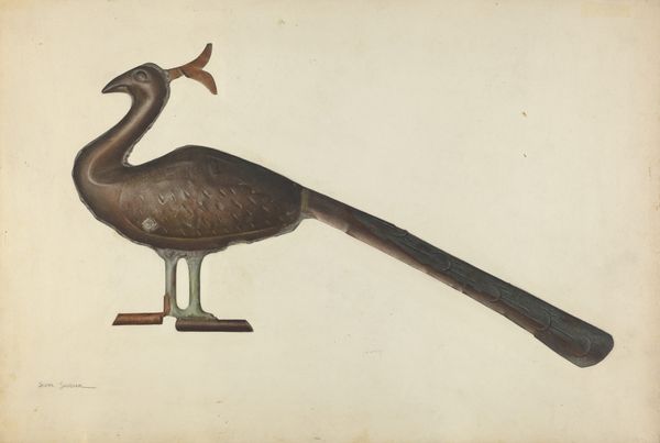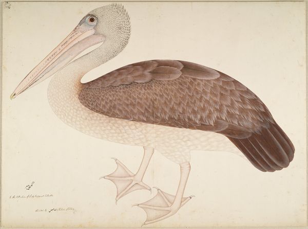 Curator: Look at this marvelous watercolor and print combination. The artwork is "The Fishing Hawk (Falco haliaetus)," likely created around 1754 by Mark Catesby. What are your first thoughts on this striking depiction? Editor: Immediately, I’m struck by the sheer power in the bird's posture. The hawk's intense gaze and firm grip on the fish beneath speak of dominance and a struggle for survival—a timeless symbolic battle. Curator: It’s interesting that you read that from it because this piece served a specific role in natural history documentation during the 18th century. Catesby aimed to record and categorize the flora and fauna of the Americas. The fishing hawk was not just an artwork but an itemized illustration for scientific understanding. Editor: I see it functioning in both roles. Notice how Catesby positions the hawk. It is an assertive figure, its talons firmly grasping its prey. This speaks to a universal idea of nature's food chain—a hierarchy reinforced through the image of a creature caught, almost defeated. Think of similar symbols that appear across cultures, the predator and prey. Curator: But what about the economic aspects? Depictions like this one were commissioned to promote trade and colonial expansion in new territories. Images of natural bounty supported narratives that encouraged investment and settlement. It's an early form of advertising using art. Editor: A symbol repurposed for colonial desires! The visual weight clearly rests on the bird. The artist uses the bird, as you suggested, to represent a wealth of resources. Curator: Precisely! The image has the political influence. It shaped public perception and justified certain policies. That initial sense of raw nature becomes co-opted, even exploited. Editor: This exploration reveals layers that are easily missed. The hawk becomes less a simple predator, and more a figure burdened by expectations. Curator: Well, it's certainly given me a richer perspective on the piece, seeing the layers of meaning in Mark Catesby’s creation. Editor: It's fascinating to uncover those echoes from the past and to see how even in an early natural history study, so much is communicated through imagery.