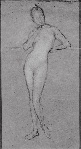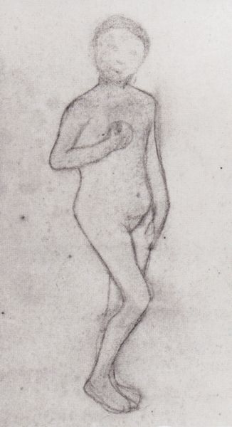 Editor: Here we have Seurat's "Male Nude Seen from Behind, study after Raphael." It's a delicate drawing, almost fading into the paper. What's striking is the focus on the human form, the labor of depicting it, and the clear reference to an earlier master. What do you see in it? Curator: The act of copying itself is key here. Seurat engages with Raphael's artistic labor, transforming it through his own hand and materials. How does this reproduction, this act of artistic "labor", affect our perception of the original and its value? Editor: That's a fascinating take. I was so focused on the form itself. Curator: Exactly, considering the materials and process shifts the focus to the creation of art as labor and its subsequent impact. Editor: I hadn't thought about it that way. I guess art isn't just about the final product but the entire process behind it. Curator: Precisely. Examining the "how" changes everything.