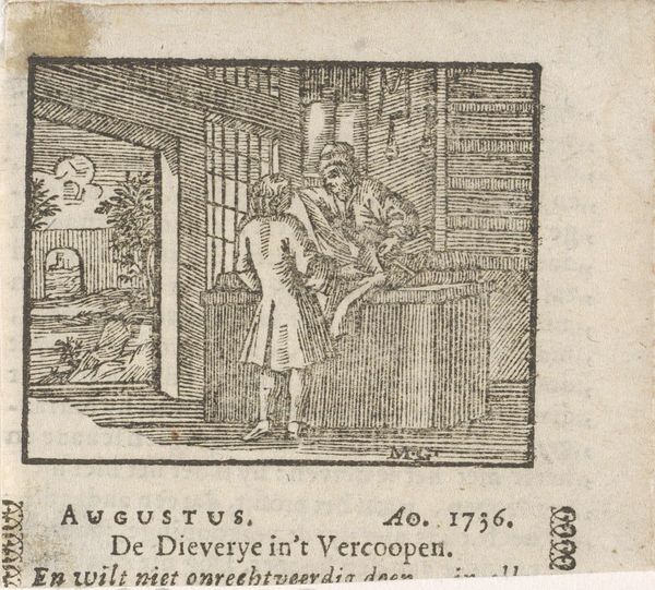 Editor: This engraving, "Biecht," which I believe translates to "Confession", by Jacob de Weert, created sometime between 1600 and 1617, strikes me as incredibly formal. The figure kneeling before the confessional looks so still, so posed. What do you see in this piece that stands out? Curator: The formality is precisely the point. Considering the social context of the time, engravings like these weren't simply artistic expressions, but served a distinct didactic function, reinforcing specific religious practices and moral codes. The image portrays not just the act of confession, but the ideal of it. Editor: So it's like a PR piece for confession? Curator: In a way, yes. Think about the Counter-Reformation and how the Catholic Church sought to reaffirm its authority. Images like this were circulated to promote adherence to sacraments. Consider the strategic placement of text within the image. How does that influence our reading? Editor: I guess it adds another layer, it feels very deliberate to include a latin phrase about death, before confessing, with the artist’s name attached, making it appear… sanctioned? Almost official. I hadn't thought about engravings being used for anything beyond just art. Curator: Exactly! Understanding the historical function gives the image much greater meaning. We're not just viewing a scene, but witnessing a visual argument meant to influence behaviour and strengthen the Church's hold. Is this shift in perspective something you will remember moving forward? Editor: Definitely. It is easy to forget that pieces served purposes that weren't entirely aesthetic. It changes how I perceive similar works. Thanks for highlighting this social and political dimension, that's eye-opening.