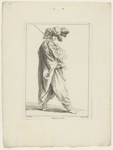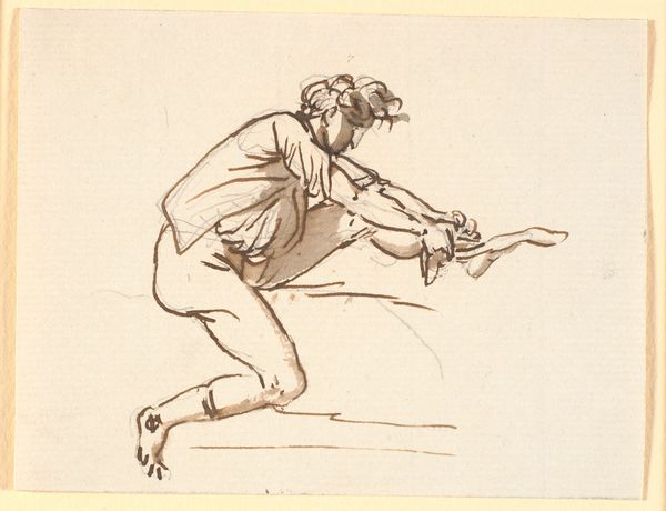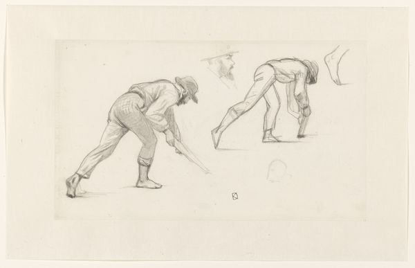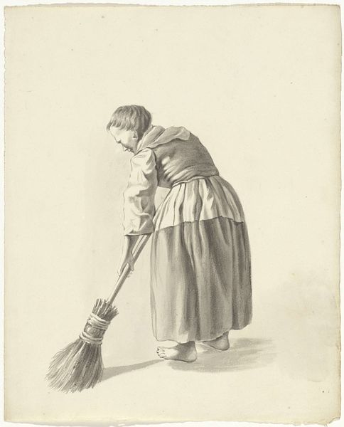 Editor: This is Leopold von Kalckreuth's "Potato Sower," a drawing made with pencil on paper in 1904. The stooped posture and heavy clothing give it a mood of relentless toil. How do you interpret this work? Curator: It’s tempting to read this through the lens of early 20th-century labor movements. What does it mean to depict this woman, so burdened by labor? Is this a glorification, a critique, or something else entirely? Think about the tradition of peasant imagery, often romanticized. Is Kalckreuth engaging with that tradition, or challenging it by showing the physical toll? Editor: I see what you mean. There is something about the downward angle of her head, almost like she’s being forced to look down, as if weighed down by circumstance. Curator: Exactly. Consider how social hierarchies play out in seemingly simple images. What power structures are at work here? Does the artist give her agency, or is she merely a symbol of hardship? And who is the intended viewer of this artwork, and how does that shape its meaning? Editor: It really makes you think about whose stories are being told and from what perspective. I initially just saw a drawing of a woman working, but it's so much more layered than that. Curator: Absolutely. Art often reflects the social realities and power dynamics of its time, and prompts critical engagement with history. Editor: I’ll definitely look at other Realist works with a different eye now. Curator: That's the point, isn't it? To keep questioning.