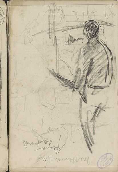 Editor: Here we have George Hendrik Breitner’s “Boats in the Water and a Man’s Head,” sketched sometime between 1881 and 1883. It's a pencil drawing, very quick and raw. What strikes me is how fleeting and unfinished it feels—like a glimpse into the artist's sketchbook. What do you see when you look at it? Curator: Oh, absolutely, a fleeting moment captured! You know, Breitner was all about documenting the everyday hustle and bustle of Amsterdam. This feels like a snatched scene, almost as if he were sketching on the run. And those unfinished lines? For me, they almost vibrate with the energy of the city itself. What's more, what’s fascinating to me is that he pairs this industrial, nautical theme with an intimate human subject. It reminds me, the mundane everyday is never REALLY mundane, is it? Editor: It does feel very of-the-moment! I'm curious, do you think there's a reason he didn’t finish it? Or why he chose these two subjects to put on one page? Curator: Perhaps time constraints. You have to imagine him being very busy to even capture this small part of the world. What do you think that he saw on this specific day? Were there more men like him that he wished to also draw? Did the light call out the boats or the person first? What I wonder is the artist calling to him or was he drawn to the sketch, feeling unfinished? Maybe there is another drawing with only a fully formed version of the man to his left! We just don’t know. Editor: That’s such an interesting way of thinking about it. Curator: Well, these works offer little vignettes of what he valued in daily life and even his working style. As a historical time capsule it presents what mattered in those times through very simple strokes. Editor: I never thought of it that way, it's such a great summary to capture the life, intentions, and feelings behind the art. Curator: Well said. Art asks us to question more!