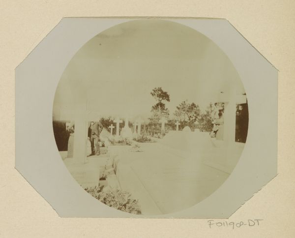 This photograph entitled 'Straat met aan weerszijden gebouwen in Nederlands-Indië' was taken by Klaas Kleiterp at an unknown date. It's a small work, capturing a street scene in the former Dutch East Indies. The photograph's tones are muted, almost monochromatic. This limited palette emphasizes the play of light and shadow across the architecture, and the road itself. There's something about the way the light falls that gives the photograph an enduring, melancholic feeling. Look at how the palm trees in the center fade into the distance. The soft focus almost makes them look like they are floating above the buildings. This blur feels significant. It invites us to reflect on the photograph as both a record of a place and a personal, emotive response. It reminds me of some of Gerhard Richter's blurred photographs. Like Richter, Kleiterp finds an intimacy in a softened, almost ghostly image. There's something beautiful in that ambiguity.