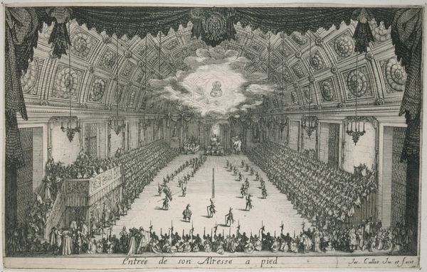 Frans Geffels made this etching of an opera performance for Emperor Leopold I in 1668. Etching is a printmaking technique that uses acid to cut into a metal plate, usually copper. The plate is covered with a waxy, acid-resistant substance, through which the artist scratches the design. When the plate is dipped in acid, the exposed metal is eaten away, creating recessed lines. These lines hold ink, which is then transferred to paper under pressure, resulting in a print. Look closely at the image and you'll notice the precision and detail achieved through the etching process. The sharp, clean lines define the architectural grandeur of the theater, the elaborate costumes, and the multitude of figures in attendance. The quality of the line speaks to the etcher’s hand, and the amount of labor needed to produce the plate. The print not only immortalizes the event, but speaks volumes about the intersection of art, power, and social class. It offers insight into the cultural values of the time, showing how making and context come together to expand traditional ideas about art history.