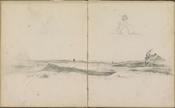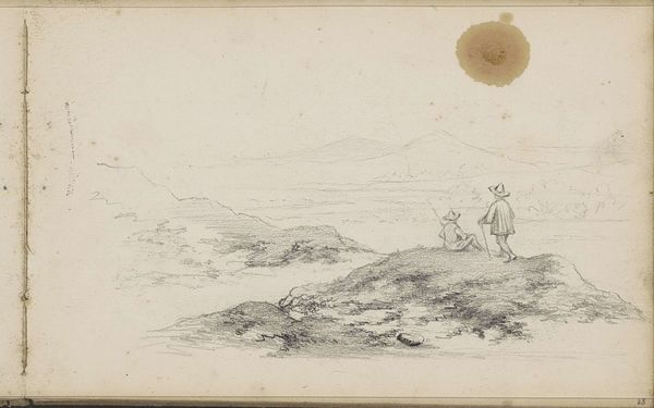 This drawing, Rider and a Woman with Wheat in a Hilly Landscape, was created by Johannes Tavenraat. In this work, we see a tranquil scene rendered with delicate lines and subtle shading. The composition divides the landscape into distinct zones, with the foreground figures sharply contrasted against the distant, softly rendered hills. This division creates a sense of depth, but also invites a reading of the scene in terms of contrasting human scale and nature’s vastness. The figures, a horseman and a woman carrying wheat, are placed just off-center, drawing our eye to their interaction. What is the nature of the exchange? The woman’s labor stands in quiet opposition to the rider’s ease. The subdued palette and delicate lines contribute to the emotional tenor of the drawing, evoking a sense of pastoral calm. The artist’s skillful use of line and form leads us to consider how the values and structures of rural life are being represented, and perhaps, idealized.