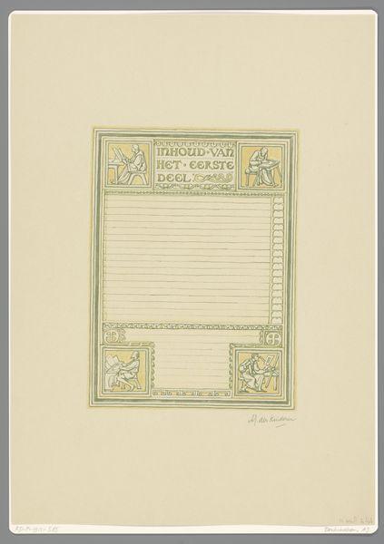 This is Antoon Derkinderen’s "Opdracht aan Hugo de Groot", made with pencil and brush in watercolor. Notice the striking arrangement of colours. The golden hues against the cool blues create a visual harmony that draws you in. Observe the patterns above and below the figures, made of circles, dots and squares, lending the piece a decorative quality that feels both ancient and timeless. The figures themselves are rendered with flowing lines, their robes draping gracefully as they engage in what appears to be a moment of offering. The composition is notably divided. The upper section bursts with intricate details and symbolic elements, while the lower portion is left largely blank, save for a few understated motifs. This contrast invites us to consider the relationship between the seen and unseen, the stated and unstated, and how meaning is constructed through both presence and absence. Is Derkinderen prompting us to fill in the gaps, to participate actively in the artwork’s narrative? It is these very questions that keep the artwork alive.