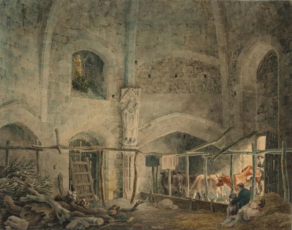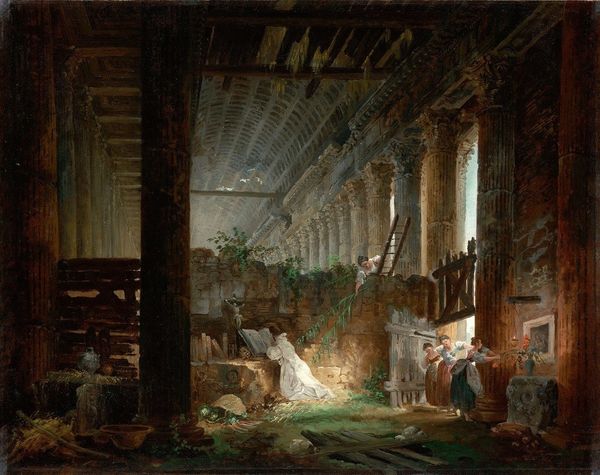 Félix Ziem painted 'Fête dans un palais à Naples', capturing a festive scene in a Neapolitan palace. Ziem, born in 1821, lived through a time of significant social change across Europe, including industrialization, urbanization, and political upheaval. This painting provides insight into the lives of people from different social strata coexisting in close proximity. The palace setting hints at the lives of the upper class, while the revelry involves a mix of people, suggesting a temporary blending of social boundaries. The architecture is rendered with broad brushstrokes and a muted palette, creating a sense of depth and history. The lively gathering, set against the backdrop of classical architecture, creates a sense of temporal depth. Ziem asks us to consider how spaces can hold multiple histories and experiences simultaneously. This work is less about historical accuracy and more about the feelings evoked by the scene—the joy, the intimacy, and the collective experience of being together.